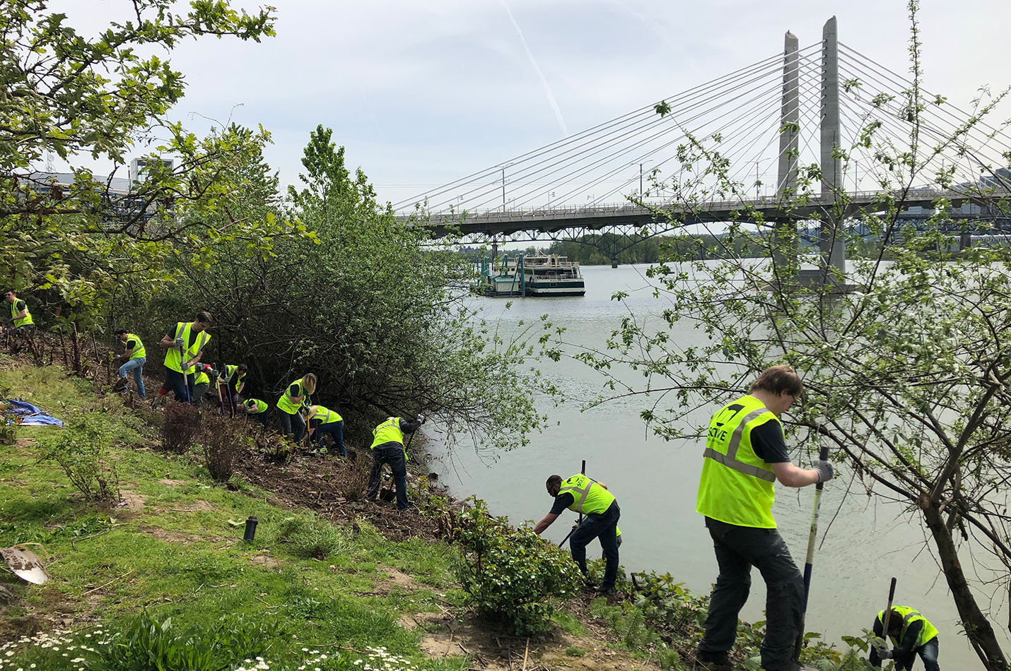 In Portland, Sydney Mills - who leads the office’s Community Service committee, arranged for volunteers to collect trash along the riverfront. They teamed up with SOLVE, an organization that aims to “take care of Oregon,” by improving the environment and protecting it for years to come. Together 24 volunteers removed 230 pounds of trash, dug up blackberry roots from over 1000 square feet of riparian area, eliminated 5 gallons of invasive lesser celandine and thistle, and mulched 30 native plants!